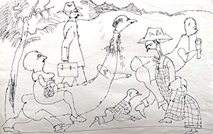 Delve into the compelling world of the legendary artist Ardeshir Mohassess with this original 8x13-inch ink-on-paper piece from 1969. This artwork exemplifies Mohassess’s signature style, blending sharp social commentary with intricate, expressive linework. Its unembellished medium and modest size bring a raw, intimate quality, inviting viewers to engage closely with its details. A timeless piece from an influential era, this work is a testament to Mohassess’s enduring legacy and artistic insight.
