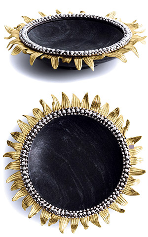 Enhance your decor with this stunning Michael Aram Tray Set, featuring pieces from the Plume and Sunflower Trinket collections. Inspired by nature, these handcrafted trays combine function with artistry.