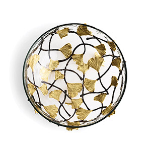 Add an artistic touch to your decor with the Michael Aram Ginkgo Glass Bowl from the Ginkgo Collection. Inspired by the beauty of the ginkgo tree, this handcrafted piece combines glass with natural and oxidized brass, showcasing Aram’s signature fusion of nature and design.