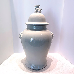 HAND GLAZED DECORATIVE GINGER JAR WITH FOO DOG LID