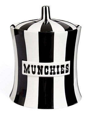 Elevate your space with the Jonathan Adler Vice Munchies Canister, a chic and playful storage solution. Crafted from high-fired porcelain, its bold black and white hand-painted design adds a graphic statement to any surface. With a 77-ounce capacity, it’s perfect for snacks or essentials, embodying Adler’s signature wit in a modern, versatile piece.